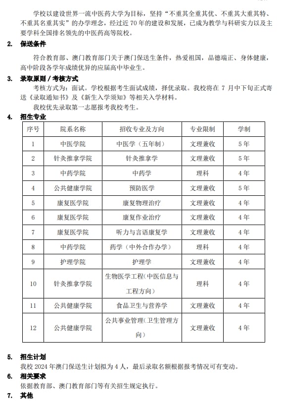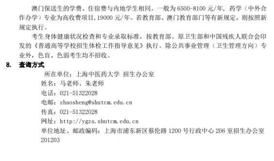 上海中医药大学2024年中国普通高等学校联合招收澳门保送生简章
